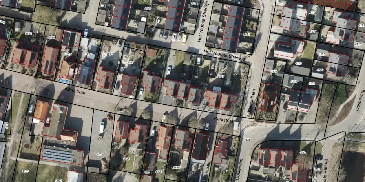 Het perceel waarop Kerkstraat 111 staat heeft een oppervlakte van 1750 m². Dit is een zeer groot perceel. De perceeloppervlakte wordt geregistreerd door het Kadaster. Gedetailleerde informatie over de maten van dit perceel kunt u vinden in het rapport Kadastrale kaart met maatvoering van Kerkstraat 111.