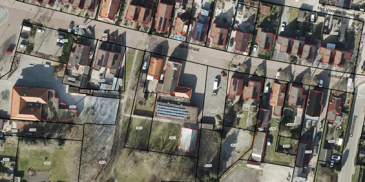 Het perceel waarop Kerkstraat 122 staat heeft een oppervlakte van 1515 m². Dit is een zeer groot perceel. De perceeloppervlakte wordt geregistreerd door het Kadaster. Gedetailleerde informatie over de maten van dit perceel kunt u vinden in het rapport Kadastrale kaart met maatvoering van Kerkstraat 122.