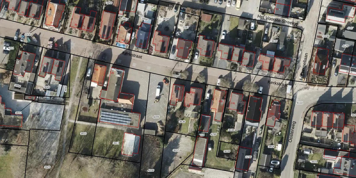 Het perceel waarop Kerkstraat 126 staat heeft een oppervlakte van 592 m². Dit is een groot perceel. De perceeloppervlakte wordt geregistreerd door het Kadaster. Gedetailleerde informatie over de maten van dit perceel kunt u vinden in het rapport Kadastrale kaart met maatvoering van Kerkstraat 126.