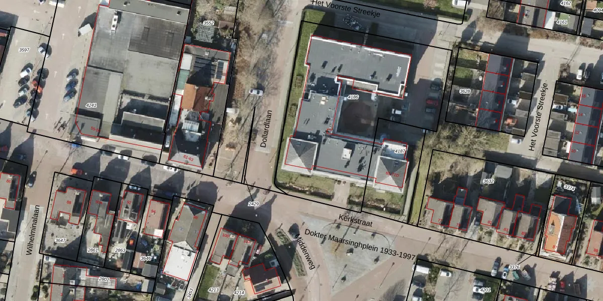 Het perceel waarop Kerkstraat 67-C staat heeft een oppervlakte van 2282 m². Dit is een zeer groot perceel. De perceeloppervlakte wordt geregistreerd door het Kadaster. Gedetailleerde informatie over de maten van dit perceel kunt u vinden in het rapport Kadastrale kaart met maatvoering van Kerkstraat 67-C.