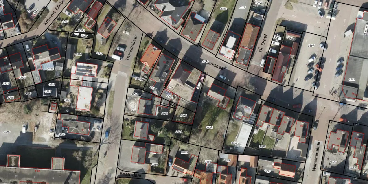 Het perceel waarop Kerkstraat 68-A staat heeft een oppervlakte van 425 m². Dit is een groot perceel. De perceeloppervlakte wordt geregistreerd door het Kadaster. Gedetailleerde informatie over de maten van dit perceel kunt u vinden in het rapport Kadastrale kaart met maatvoering van Kerkstraat 68-A.