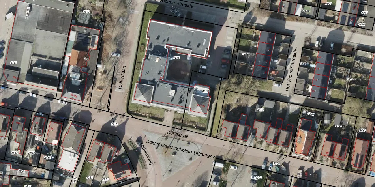 Het perceel waarop Kerkstraat 69-A staat heeft een oppervlakte van 2282 m². Dit is een zeer groot perceel. De perceeloppervlakte wordt geregistreerd door het Kadaster. Gedetailleerde informatie over de maten van dit perceel kunt u vinden in het rapport Kadastrale kaart met maatvoering van Kerkstraat 69-A.