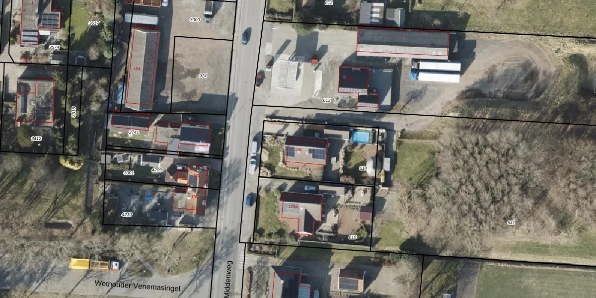 Middenweg 129 is gelegen op kadastraal perceel MTD01E614. Deze kadastrale aanduiding is uniek en wordt gebruikt door het Kadaster om eigendomsrechten en andere zakelijke rechten vast te leggen. Het perceel maakt onderdeel uit van de kadastrale gemeente Muntendam.