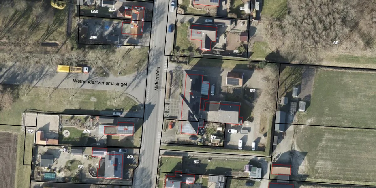 Middenweg 131 is gelegen op kadastraal perceel MTD01E716. Deze kadastrale aanduiding is uniek en wordt gebruikt door het Kadaster om eigendomsrechten en andere zakelijke rechten vast te leggen. Het perceel maakt onderdeel uit van de kadastrale gemeente Muntendam.