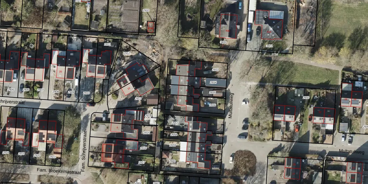 Gebruik de zoekbalk of klik op een perceel voor informatie over de adressen binnen dit perceel.