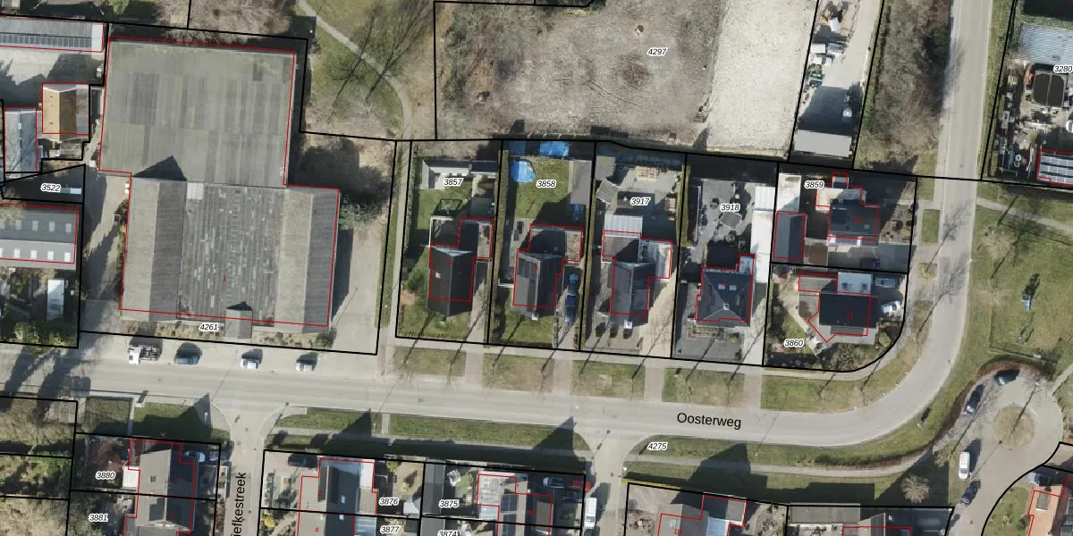 Het perceel waarop Oosterweg 5 staat heeft een oppervlakte van 669 m². Dit is een groot perceel. De perceeloppervlakte wordt geregistreerd door het Kadaster. Gedetailleerde informatie over de maten van dit perceel kunt u vinden in het rapport Kadastrale kaart met maatvoering van Oosterweg 5.