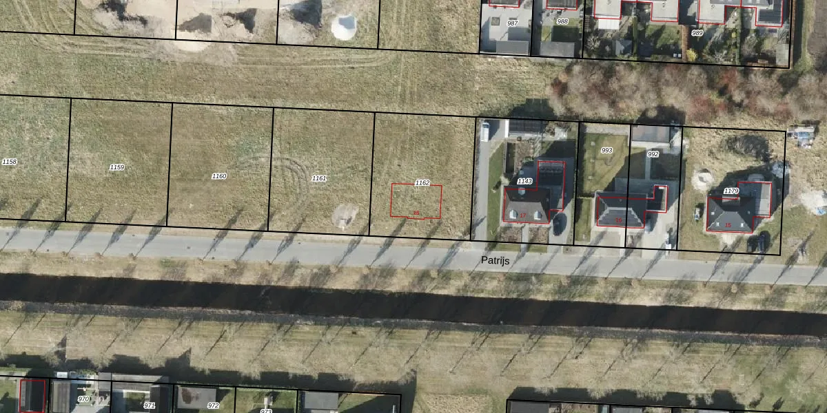 Patrijs 18 is gelegen op kadastraal perceel MTD01E1162. Deze kadastrale aanduiding is uniek en wordt gebruikt door het Kadaster om eigendomsrechten en andere zakelijke rechten vast te leggen. Het perceel maakt onderdeel uit van de kadastrale gemeente Muntendam.