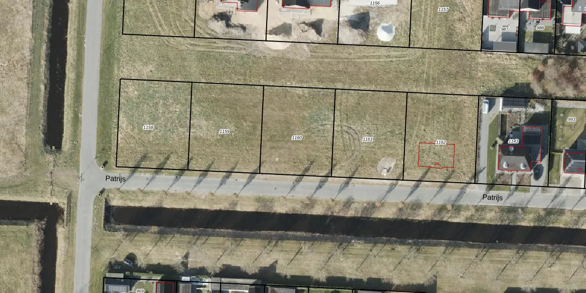 Het perceel waarop Patrijs 20 staat heeft een oppervlakte van 735 m². Dit is een groot perceel. De perceeloppervlakte wordt geregistreerd door het Kadaster. Gedetailleerde informatie over de maten van dit perceel kunt u vinden in het rapport Kadastrale kaart met maatvoering van Patrijs 20.
