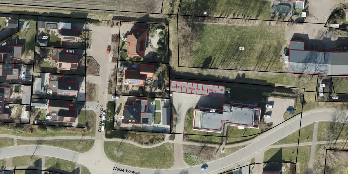Het perceel waarop Westerbouwte 20-G staat heeft een oppervlakte van 2125 m². Dit is een zeer groot perceel. De perceeloppervlakte wordt geregistreerd door het Kadaster. Gedetailleerde informatie over de maten van dit perceel kunt u vinden in het rapport Kadastrale kaart met maatvoering van Westerbouwte 20-G.