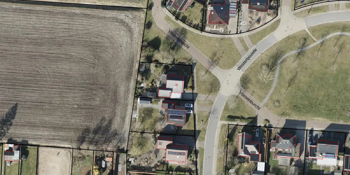 Het perceel waarop Westerbouwte 38 staat heeft een oppervlakte van 635 m². Dit is een groot perceel. De perceeloppervlakte wordt geregistreerd door het Kadaster. Gedetailleerde informatie over de maten van dit perceel kunt u vinden in het rapport Kadastrale kaart met maatvoering van Westerbouwte 38.