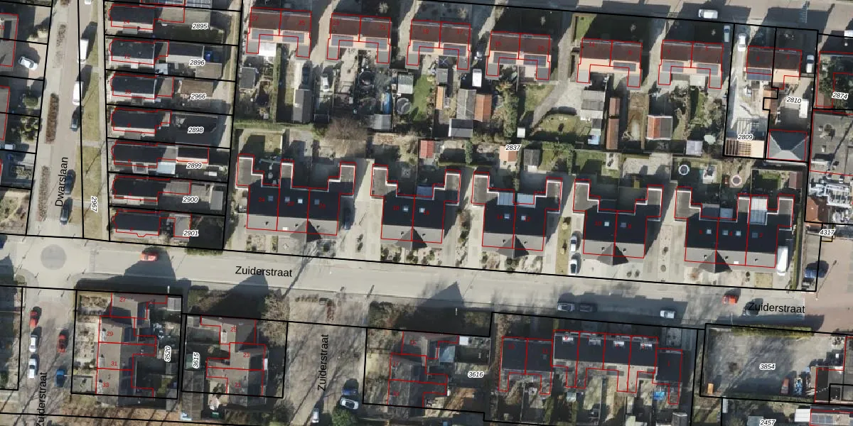 Het perceel waarop Zuiderstraat 16 staat heeft een oppervlakte van 7870 m². Dit is een zeer groot perceel. De perceeloppervlakte wordt geregistreerd door het Kadaster. Gedetailleerde informatie over de maten van dit perceel kunt u vinden in het rapport Kadastrale kaart met maatvoering van Zuiderstraat 16.