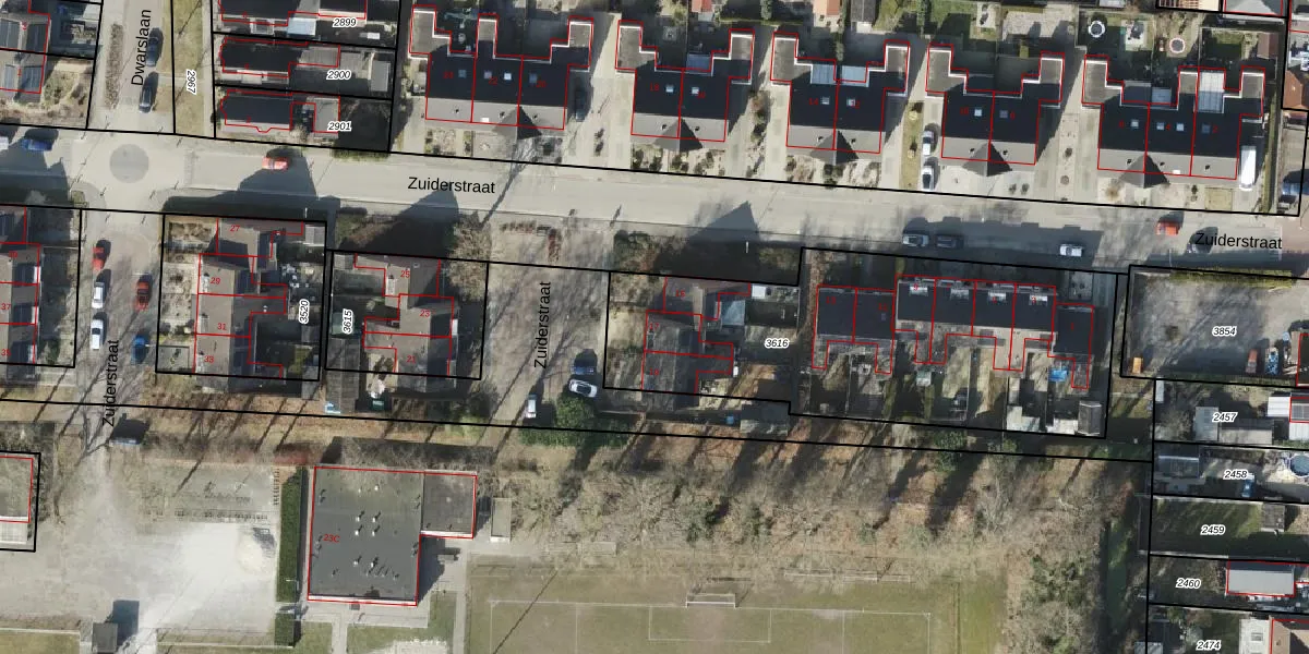 Het perceel waarop Zuiderstraat 17 staat heeft een oppervlakte van 1784 m². Dit is een zeer groot perceel. De perceeloppervlakte wordt geregistreerd door het Kadaster. Gedetailleerde informatie over de maten van dit perceel kunt u vinden in het rapport Kadastrale kaart met maatvoering van Zuiderstraat 17.