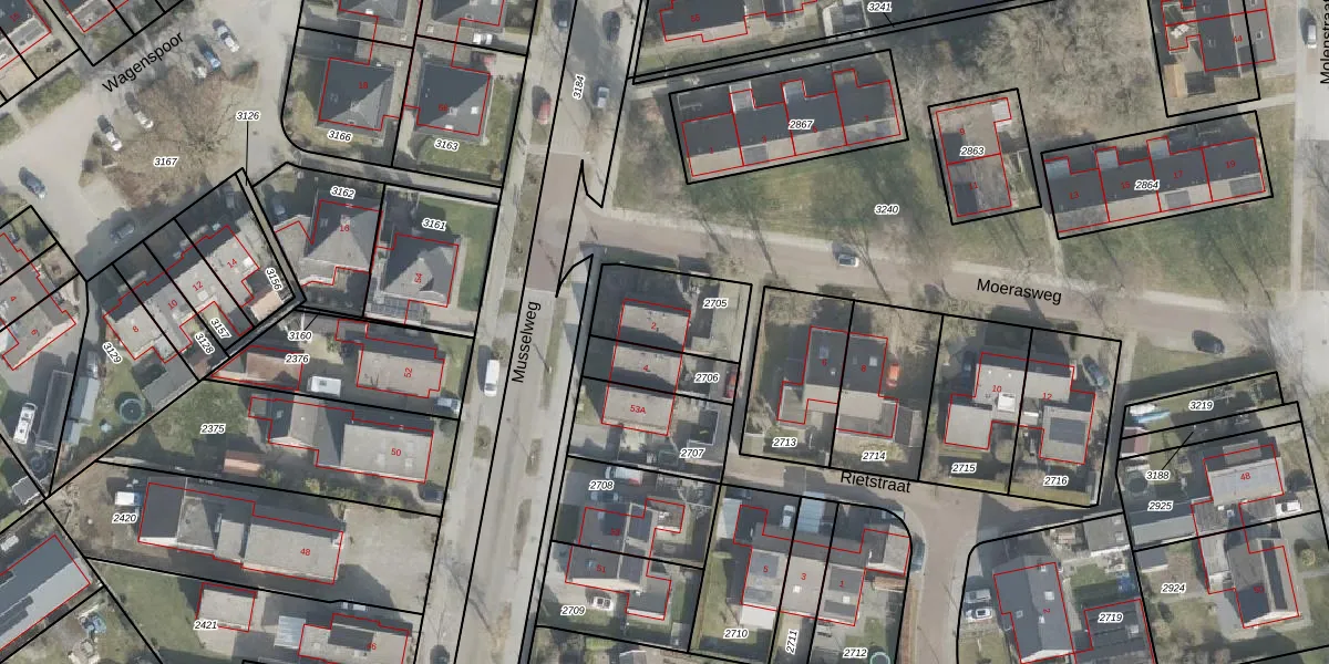 Gebruik de zoekbalk of klik op een perceel voor informatie over de adressen binnen dit perceel.