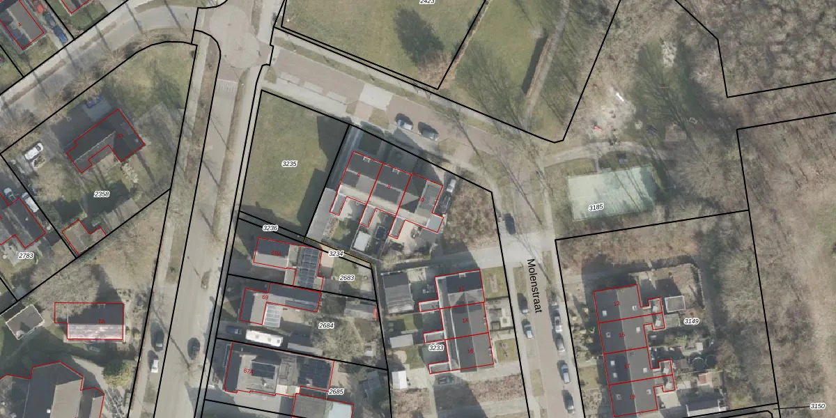Het perceel waarop Molenstraat 10 staat heeft een oppervlakte van 3377 m². Dit is een zeer groot perceel. De perceeloppervlakte wordt geregistreerd door het Kadaster. Gedetailleerde informatie over de maten van dit perceel kunt u vinden in het rapport Kadastrale kaart met maatvoering van Molenstraat 10.