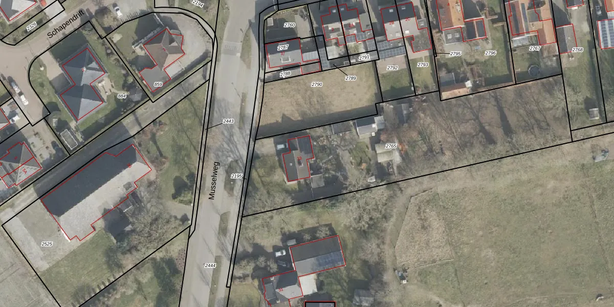 Musselweg 33 is gelegen op kadastraal perceel OWD00O2765. Deze kadastrale aanduiding is uniek en wordt gebruikt door het Kadaster om eigendomsrechten en andere zakelijke rechten vast te leggen. Het perceel maakt onderdeel uit van de kadastrale gemeente Onstwedde.