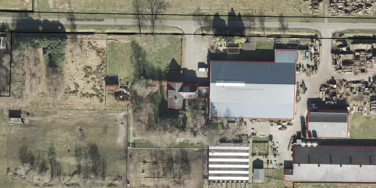 Het perceel waarop Veldwachterslaan 4 staat heeft een oppervlakte van 2,5 ha. Dit is een zeer groot perceel. De perceeloppervlakte wordt geregistreerd door het Kadaster. Gedetailleerde informatie over de maten van dit perceel kunt u vinden in het rapport Kadastrale kaart met maatvoering van Veldwachterslaan 4.