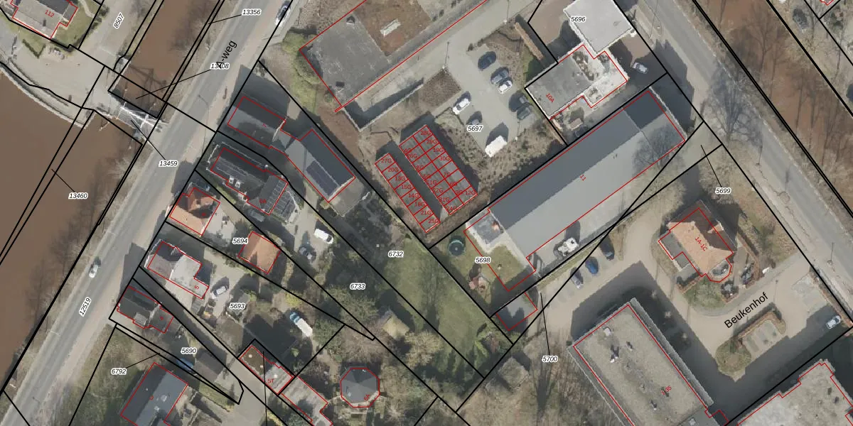 Het perceel waarop het adres ligt is OWD00-M-5697. De afkorting 'OWD00' staat voor kadastrale gemeente Onstwedde. Het perceel is kleiner dan gemiddeld in Onstwedde. Het perceel is 4465 m² groot, terwijl het gemiddelde ligt op 6381,28 m². De grootste perceeloppervlakte in de kadastrale gemeente is 1,07 km². De kleinste oppervlakte bedraagt 0 m². Er zijn 56 adressen aanwezig op het perceel. De huidige grenzen van het perceel zijn digitaal in de Basisregistratie Kadaster (BRK) geregistreerd op 03-09-2001.