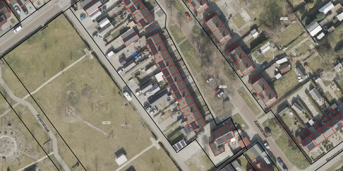 Het perceel waarop Asterstraat 26 staat heeft een oppervlakte van 4345 m². Dit is een zeer groot perceel. De perceeloppervlakte wordt geregistreerd door het Kadaster. Gedetailleerde informatie over de maten van dit perceel kunt u vinden in het rapport Kadastrale kaart met maatvoering van Asterstraat 26.