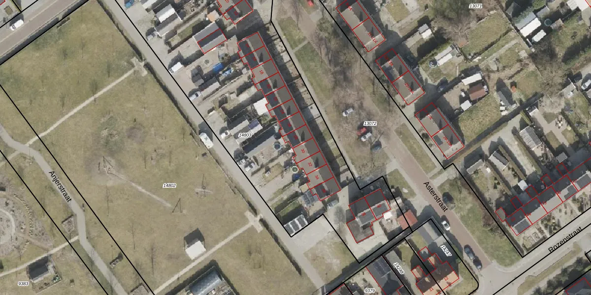 Het perceel waarop Asterstraat 30 staat heeft een oppervlakte van 4345 m². Dit is een zeer groot perceel. De perceeloppervlakte wordt geregistreerd door het Kadaster. Gedetailleerde informatie over de maten van dit perceel kunt u vinden in het rapport Kadastrale kaart met maatvoering van Asterstraat 30.