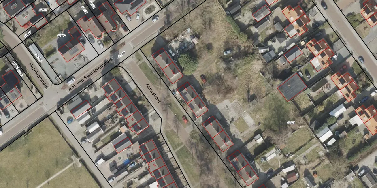 Het perceel waarop Asterstraat 5-A staat heeft een oppervlakte van 1,4 ha. Dit is een zeer groot perceel. De perceeloppervlakte wordt geregistreerd door het Kadaster. Gedetailleerde informatie over de maten van dit perceel kunt u vinden in het rapport Kadastrale kaart met maatvoering van Asterstraat 5-A.