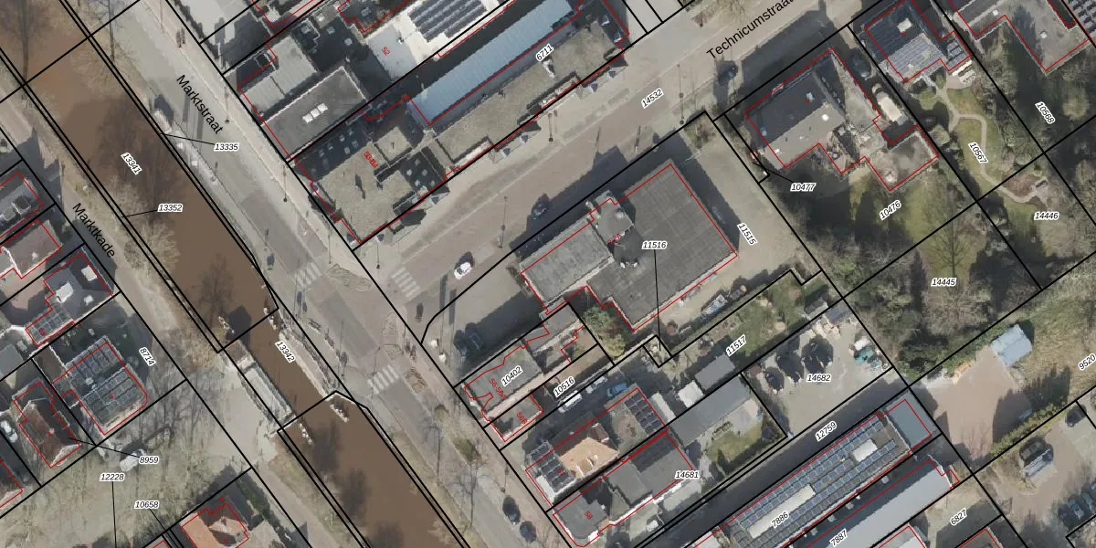 Het perceel waarop Technicumstraat 2-A staat heeft een oppervlakte van 1645 m². Dit is een zeer groot perceel. De perceeloppervlakte wordt geregistreerd door het Kadaster. Gedetailleerde informatie over de maten van dit perceel kunt u vinden in het rapport Kadastrale kaart met maatvoering van Technicumstraat 2-A.