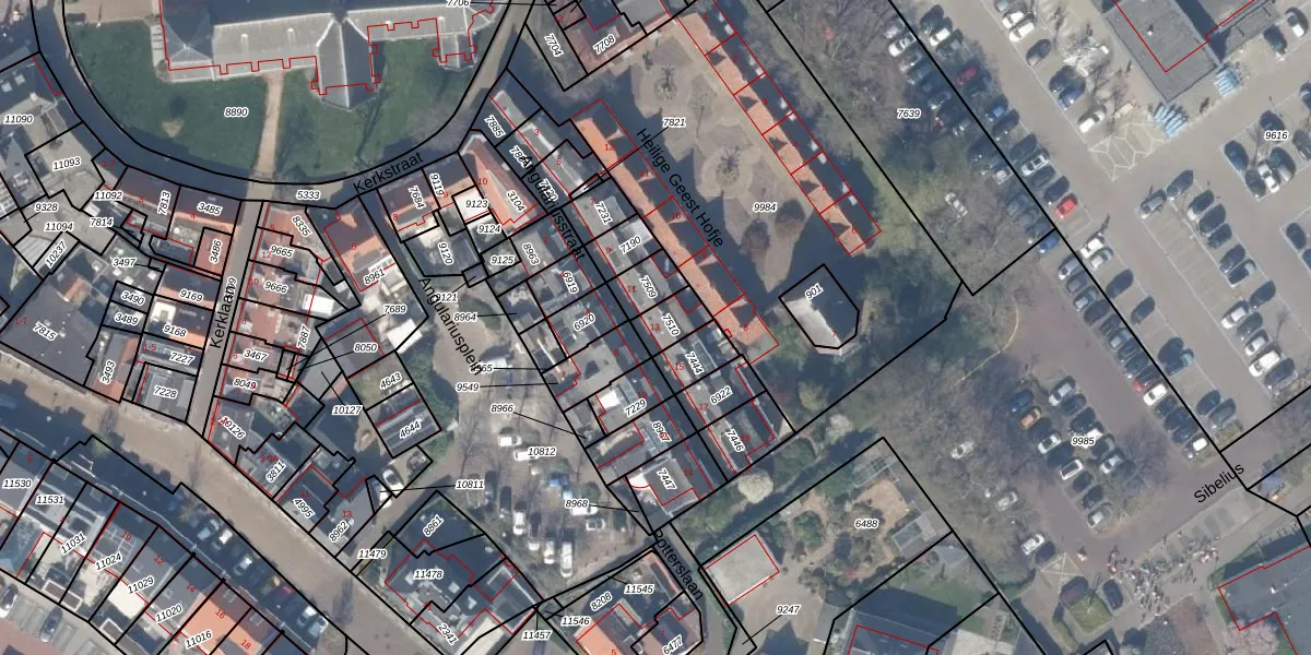 Gebruik de zoekbalk of klik op een perceel voor informatie over de adressen binnen dit perceel.