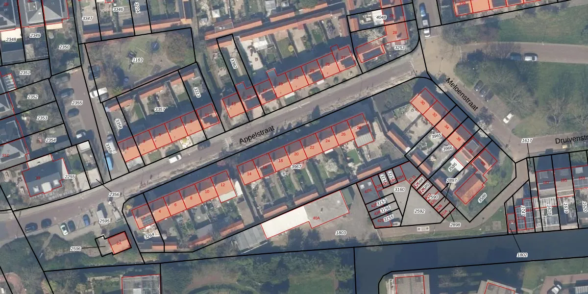 Het perceel waarop Appelstraat 20 staat heeft een oppervlakte van 2564 m². Dit is een zeer groot perceel. De perceeloppervlakte wordt geregistreerd door het Kadaster. Gedetailleerde informatie over de maten van dit perceel kunt u vinden in het rapport Kadastrale kaart met maatvoering van Appelstraat 20.