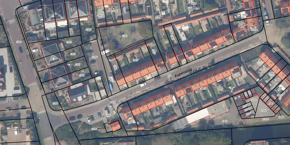 Het perceel waarop Appelstraat 7 staat heeft een oppervlakte van 590 m². Dit is een groot perceel. De perceeloppervlakte wordt geregistreerd door het Kadaster. Gedetailleerde informatie over de maten van dit perceel kunt u vinden in het rapport Kadastrale kaart met maatvoering van Appelstraat 7.