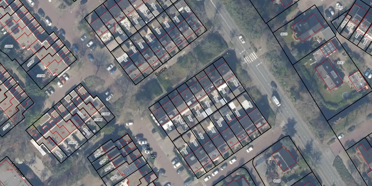 Het perceel waarop Bartòk 9 staat heeft een oppervlakte van 134 m². Dit is een middelgroot perceel. De perceeloppervlakte wordt geregistreerd door het Kadaster. Gedetailleerde informatie over de maten van dit perceel kunt u vinden in het rapport Kadastrale kaart met maatvoering van Bartòk 9.