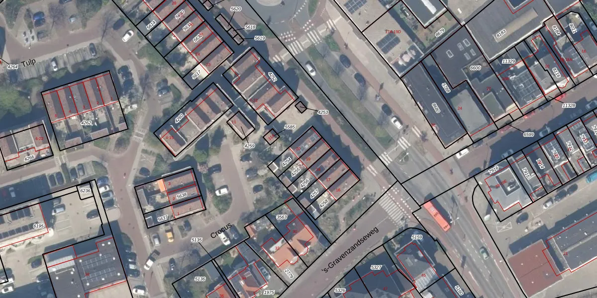 Gebruik de zoekbalk of klik op een perceel voor informatie over de adressen binnen dit perceel.