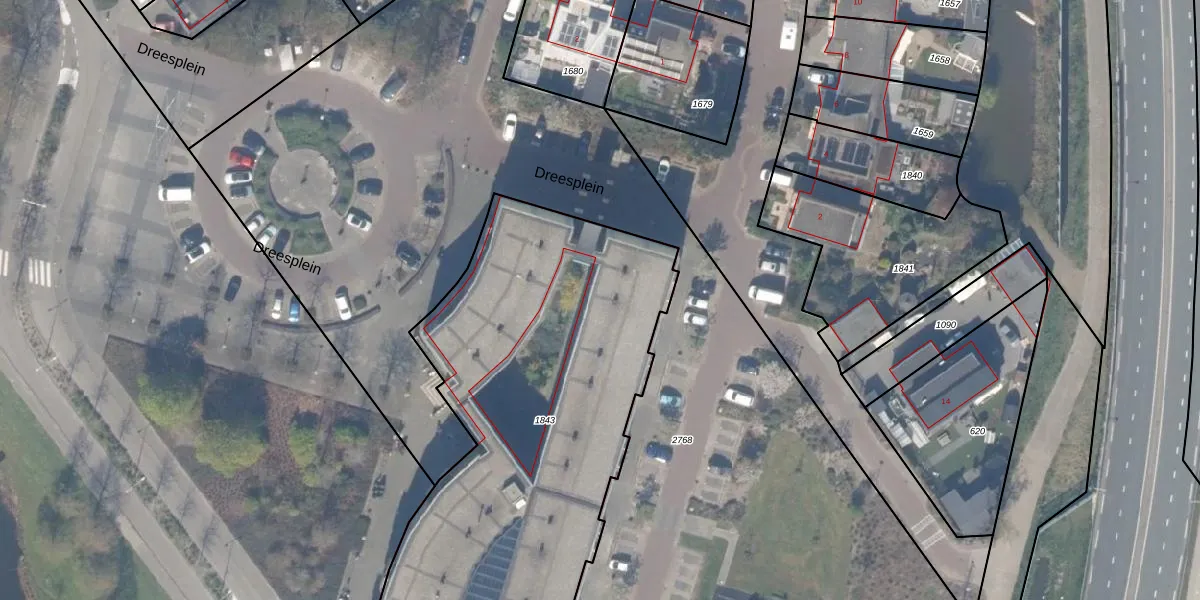 Het perceel waarop Dreesplein 15 staat heeft een oppervlakte van 2531 m². Dit is een zeer groot perceel. De perceeloppervlakte wordt geregistreerd door het Kadaster. Gedetailleerde informatie over de maten van dit perceel kunt u vinden in het rapport Kadastrale kaart met maatvoering van Dreesplein 15.