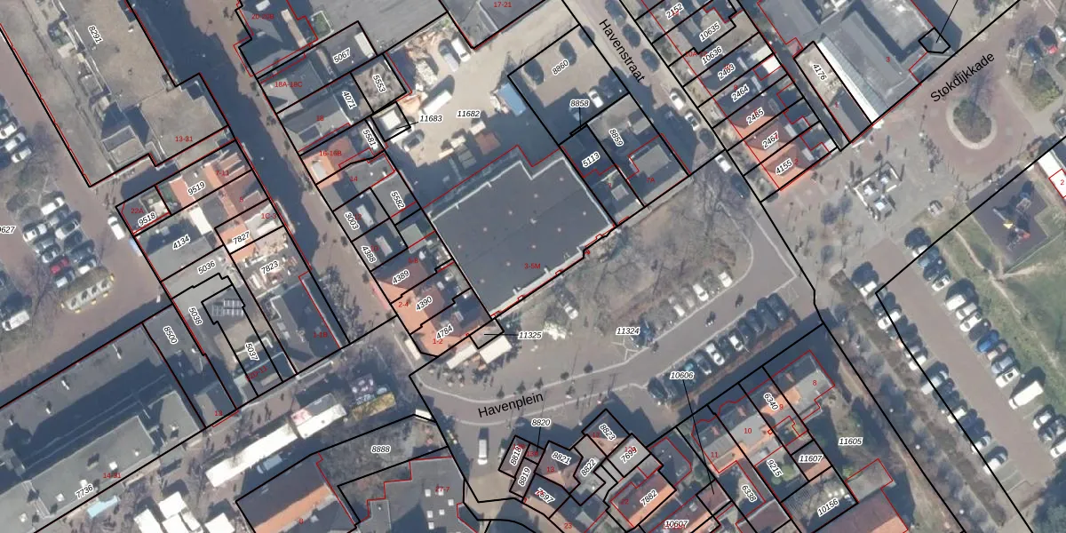 Het perceel waarop Havenplein 3 staat heeft een oppervlakte van 1435 m². Dit is een zeer groot perceel. De perceeloppervlakte wordt geregistreerd door het Kadaster. Gedetailleerde informatie over de maten van dit perceel kunt u vinden in het rapport Kadastrale kaart met maatvoering van Havenplein 3.
