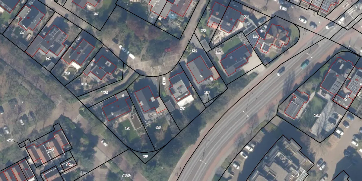 Gebruik de zoekbalk of klik op een perceel voor informatie over de adressen binnen dit perceel.