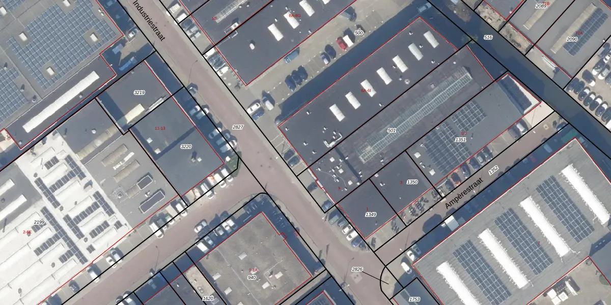 Het perceel waarop Industriestraat 6-I staat heeft een oppervlakte van 3405 m². Dit is een zeer groot perceel. De perceeloppervlakte wordt geregistreerd door het Kadaster. Gedetailleerde informatie over de maten van dit perceel kunt u vinden in het rapport Kadastrale kaart met maatvoering van Industriestraat 6-I.