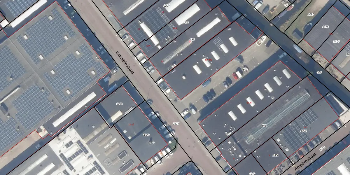 Industriestraat 8-D is gelegen op kadastraal perceel NWK01H500. Deze kadastrale aanduiding is uniek en wordt gebruikt door het Kadaster om eigendomsrechten en andere zakelijke rechten vast te leggen. Het perceel maakt onderdeel uit van de kadastrale gemeente Naaldwijk.