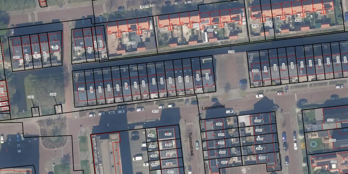 Laterastraat 31 is gelegen op kadastraal perceel NWK01C3041. Deze kadastrale aanduiding is uniek en wordt gebruikt door het Kadaster om eigendomsrechten en andere zakelijke rechten vast te leggen. Het perceel maakt onderdeel uit van de kadastrale gemeente Naaldwijk.