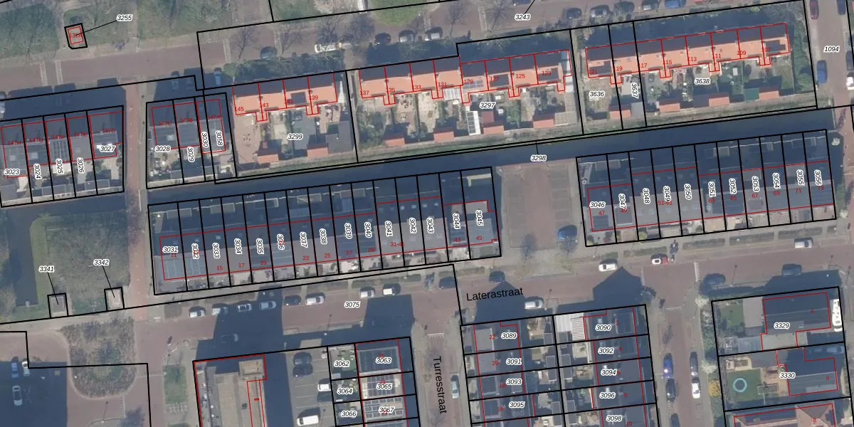 Laterastraat 41 is gelegen op kadastraal perceel NWK01C3043. Deze kadastrale aanduiding is uniek en wordt gebruikt door het Kadaster om eigendomsrechten en andere zakelijke rechten vast te leggen. Het perceel maakt onderdeel uit van de kadastrale gemeente Naaldwijk.