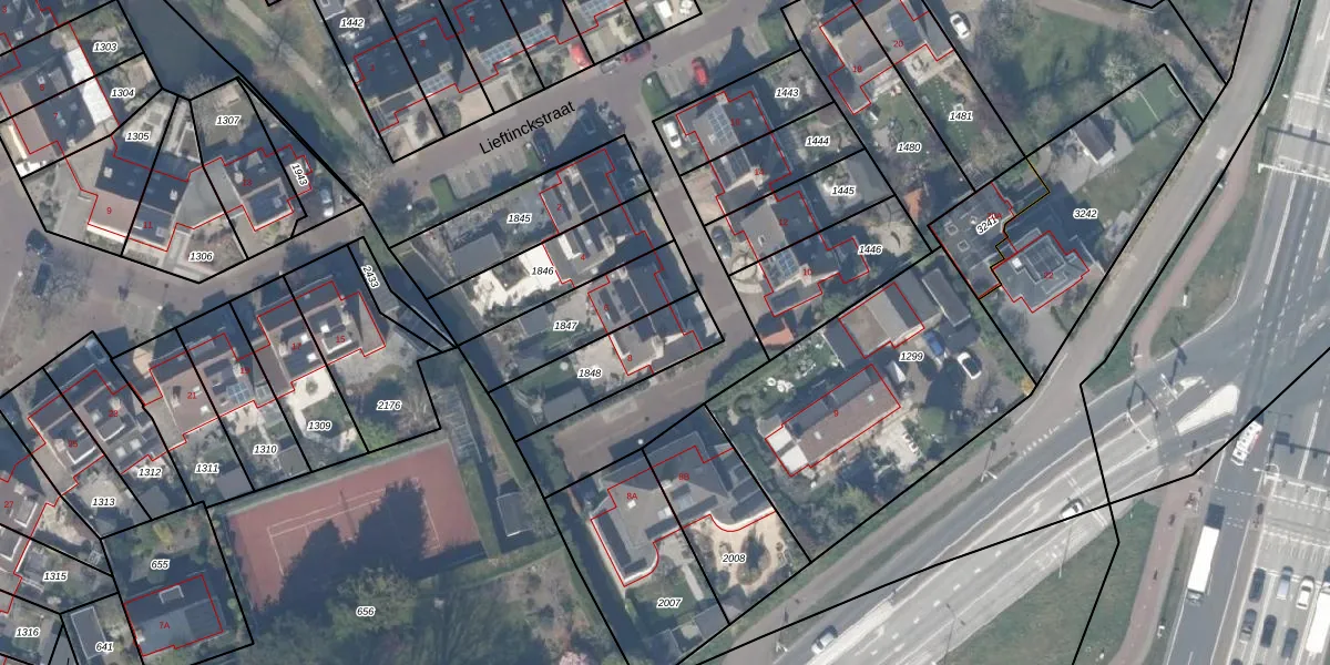 Het perceel waarop Lieftinckstraat 8 staat heeft een oppervlakte van 300 m². Dit is een groot perceel. De perceeloppervlakte wordt geregistreerd door het Kadaster. Gedetailleerde informatie over de maten van dit perceel kunt u vinden in het rapport Kadastrale kaart met maatvoering van Lieftinckstraat 8.