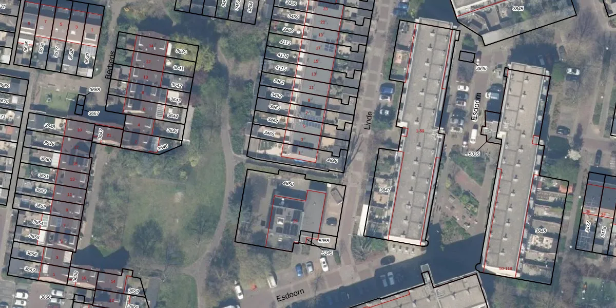 Gebruik de zoekbalk of klik op een perceel voor informatie over de adressen binnen dit perceel.