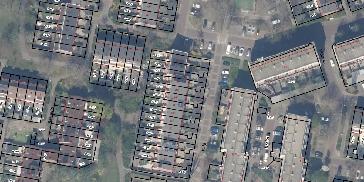 Gebruik de zoekbalk of klik op een perceel voor informatie over de adressen binnen dit perceel.