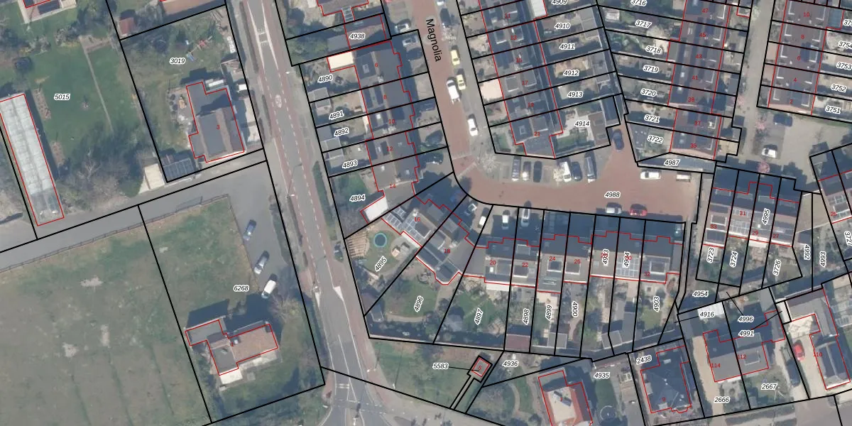 Het perceel waarop Magnolia 16 staat heeft een oppervlakte van 378 m². Dit is een groot perceel. De perceeloppervlakte wordt geregistreerd door het Kadaster. Gedetailleerde informatie over de maten van dit perceel kunt u vinden in het rapport Kadastrale kaart met maatvoering van Magnolia 16.