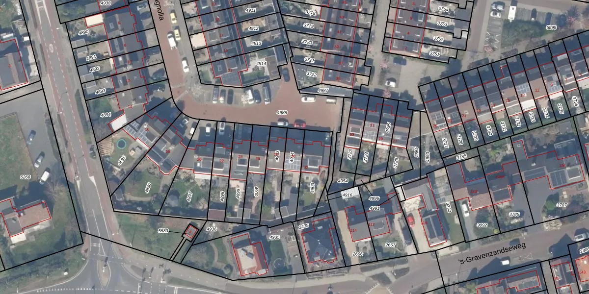 Het perceel waarop Magnolia 30 staat heeft een oppervlakte van 187 m². Dit is een middelgroot perceel. De perceeloppervlakte wordt geregistreerd door het Kadaster. Gedetailleerde informatie over de maten van dit perceel kunt u vinden in het rapport Kadastrale kaart met maatvoering van Magnolia 30.