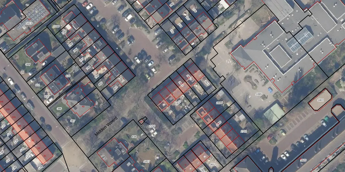 Het perceel waarop Midden Woerd 24 staat heeft een oppervlakte van 376 m². Dit is een groot perceel. De perceeloppervlakte wordt geregistreerd door het Kadaster. Gedetailleerde informatie over de maten van dit perceel kunt u vinden in het rapport Kadastrale kaart met maatvoering van Midden Woerd 24.