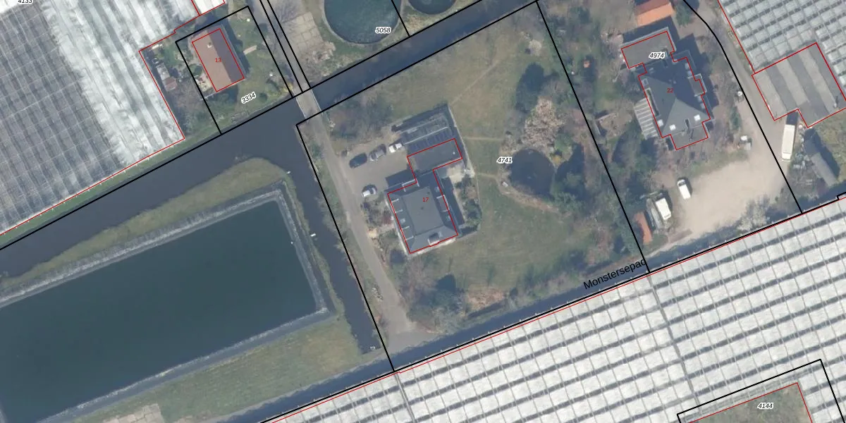 Het perceel waarop Monstersepad 17 staat heeft een oppervlakte van 4260 m². Dit is een zeer groot perceel. De perceeloppervlakte wordt geregistreerd door het Kadaster. Gedetailleerde informatie over de maten van dit perceel kunt u vinden in het rapport Kadastrale kaart met maatvoering van Monstersepad 17.