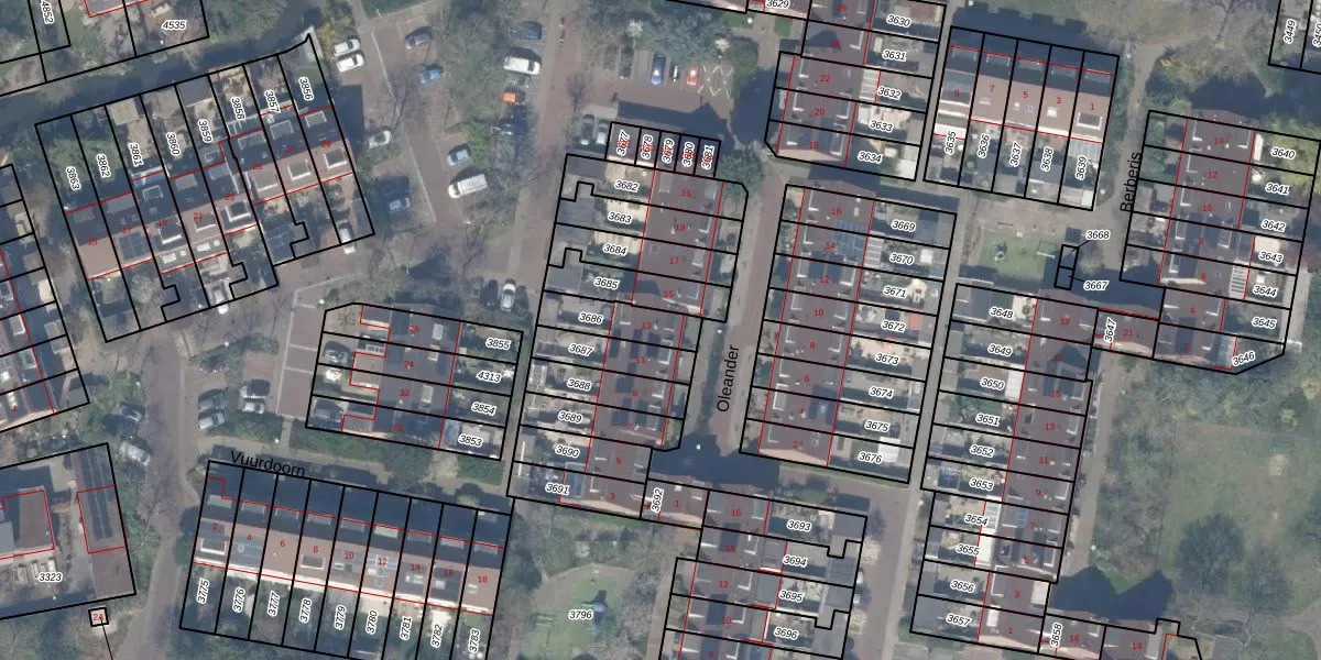 Het perceel waarop Oleander 13 staat heeft een oppervlakte van 128 m². Dit is een middelgroot perceel. De perceeloppervlakte wordt geregistreerd door het Kadaster. Gedetailleerde informatie over de maten van dit perceel kunt u vinden in het rapport Kadastrale kaart met maatvoering van Oleander 13.