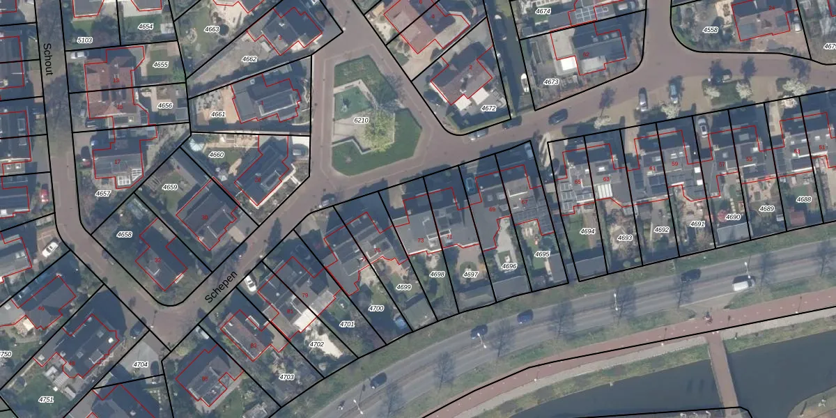 Het perceel waarop Schepen 73 staat heeft een oppervlakte van 287 m². Dit is een middelgroot perceel. De perceeloppervlakte wordt geregistreerd door het Kadaster. Gedetailleerde informatie over de maten van dit perceel kunt u vinden in het rapport Kadastrale kaart met maatvoering van Schepen 73.