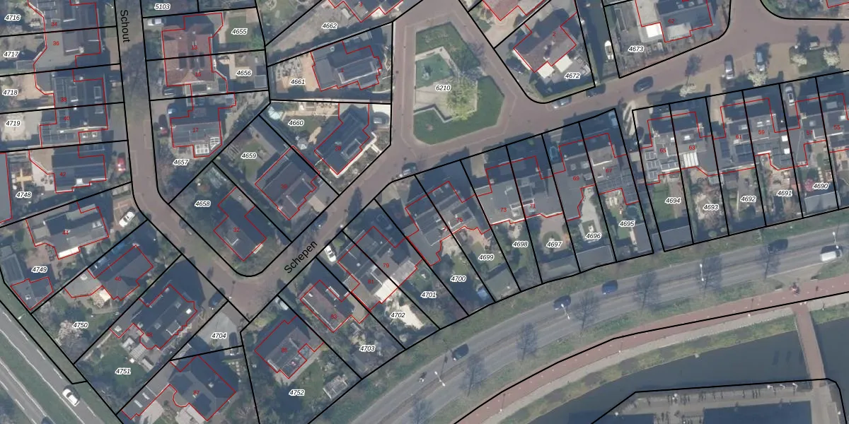 Het perceel waarop Schepen 77 staat heeft een oppervlakte van 313 m². Dit is een groot perceel. De perceeloppervlakte wordt geregistreerd door het Kadaster. Gedetailleerde informatie over de maten van dit perceel kunt u vinden in het rapport Kadastrale kaart met maatvoering van Schepen 77.