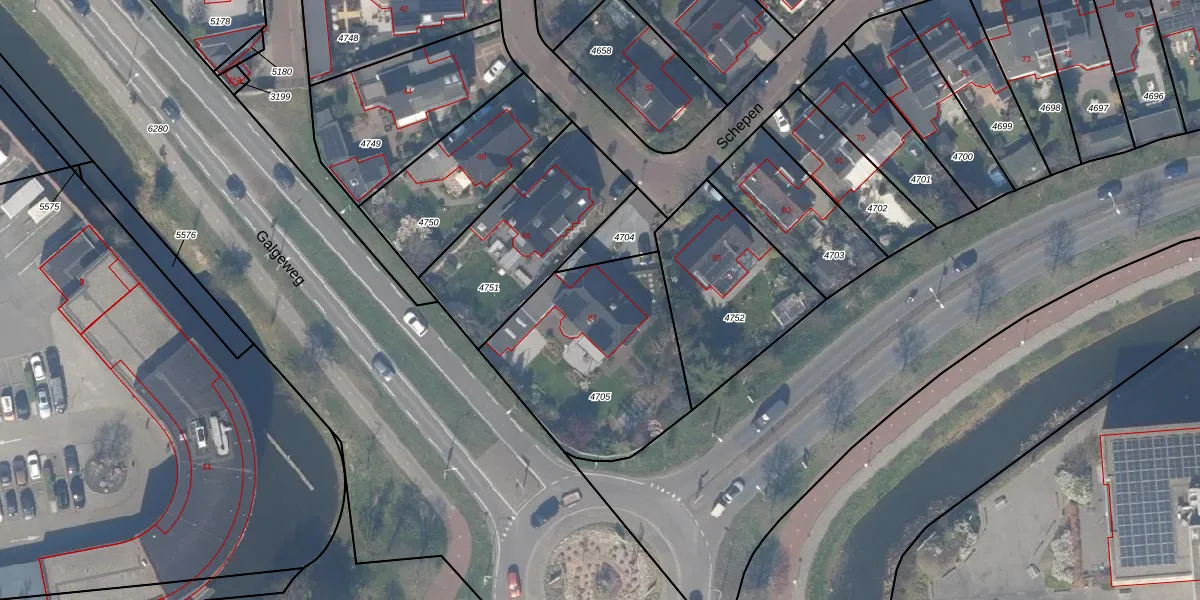 Het perceel waarop Schepen 87 staat heeft een oppervlakte van 800 m². Dit is een groot perceel. De perceeloppervlakte wordt geregistreerd door het Kadaster. Gedetailleerde informatie over de maten van dit perceel kunt u vinden in het rapport Kadastrale kaart met maatvoering van Schepen 87.
