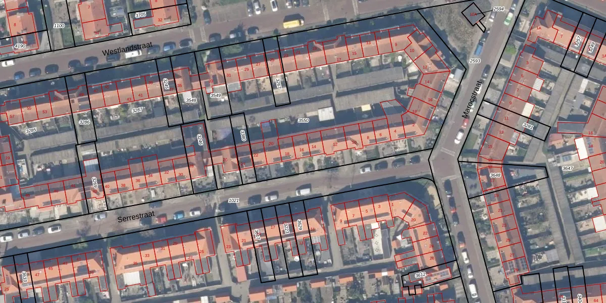 Serrestraat 16 is gelegen op kadastraal perceel NWK01C3550. Deze kadastrale aanduiding is uniek en wordt gebruikt door het Kadaster om eigendomsrechten en andere zakelijke rechten vast te leggen. Het perceel maakt onderdeel uit van de kadastrale gemeente Naaldwijk.