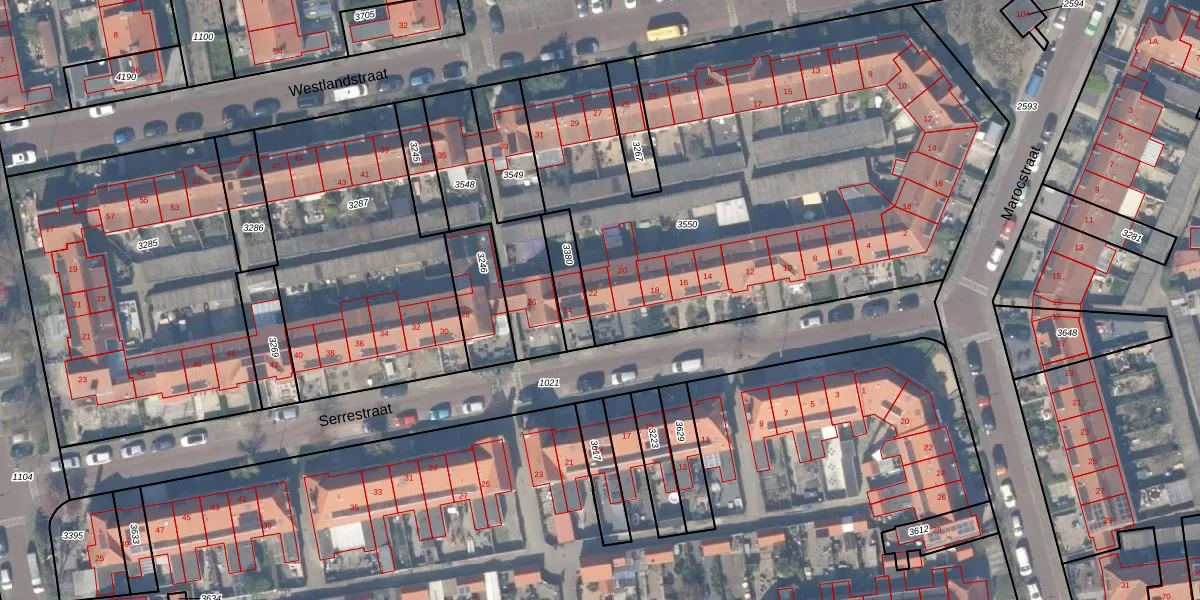 Serrestraat 22 is gelegen op kadastraal perceel NWK01C3550. Deze kadastrale aanduiding is uniek en wordt gebruikt door het Kadaster om eigendomsrechten en andere zakelijke rechten vast te leggen. Het perceel maakt onderdeel uit van de kadastrale gemeente Naaldwijk.